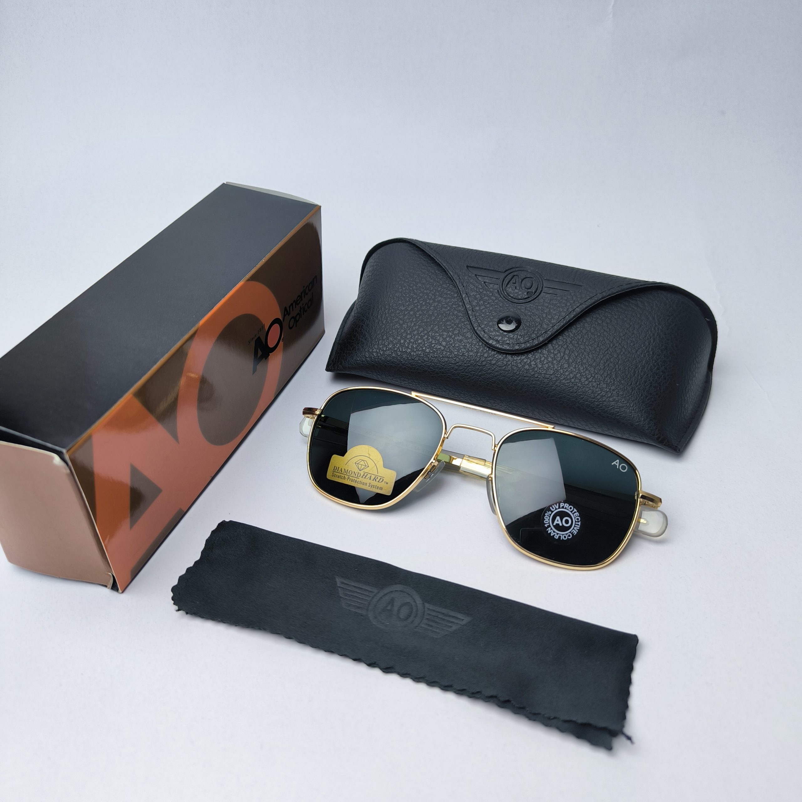 عینک آفتابی برند امریکن اوپتیکال یا AO که معروفه به عینک خلبانی. این کمپانی عینک های مخصوص نیرو های ارتش و نظامی تولید می کنه که در بازار هم عرضه میشه و به فروش میرسه